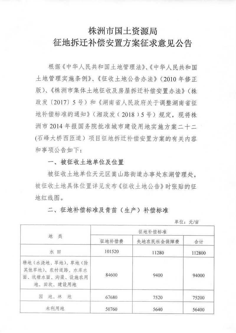征地拆迁补偿安置方案征求意见公告-石峰大桥西匝道项目