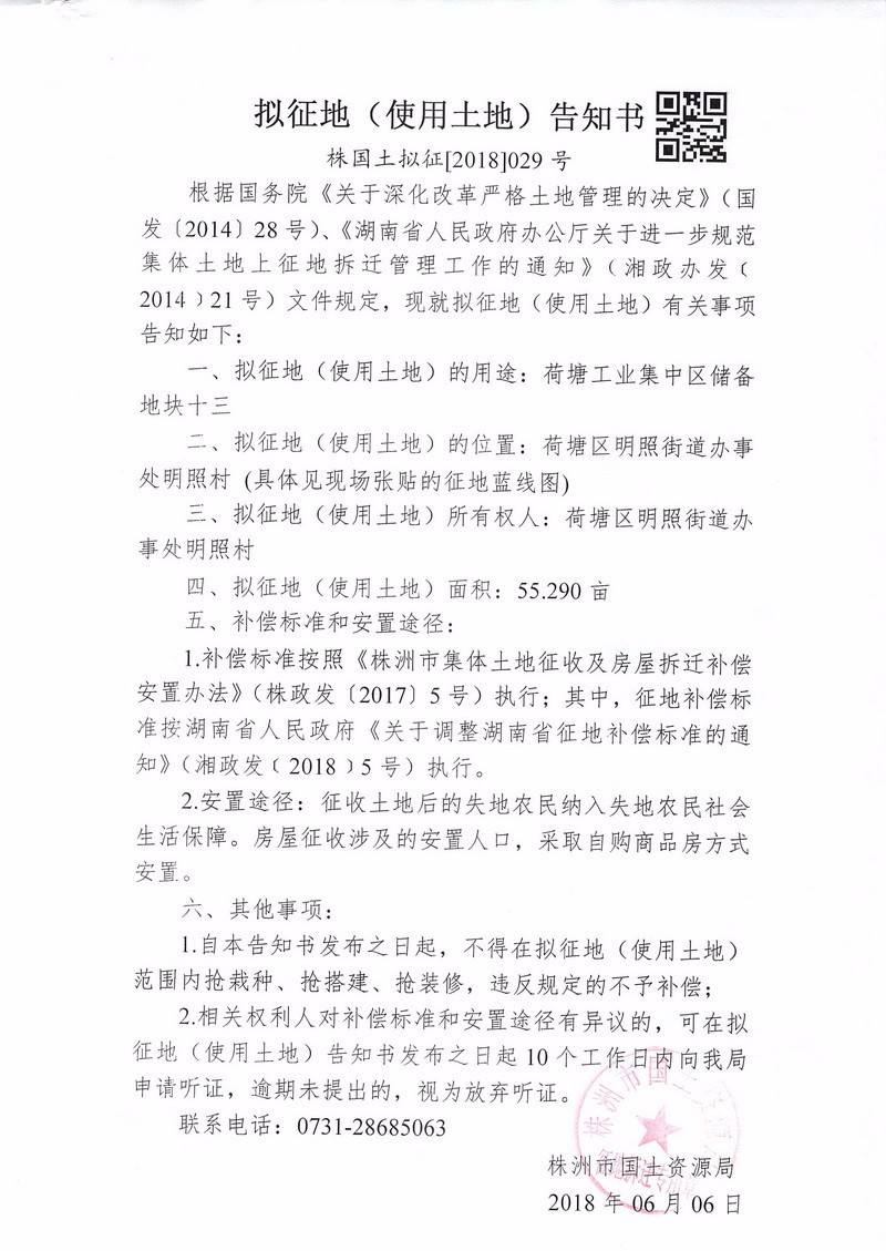 拟征地告知书-荷塘工业集中区储备地块十三