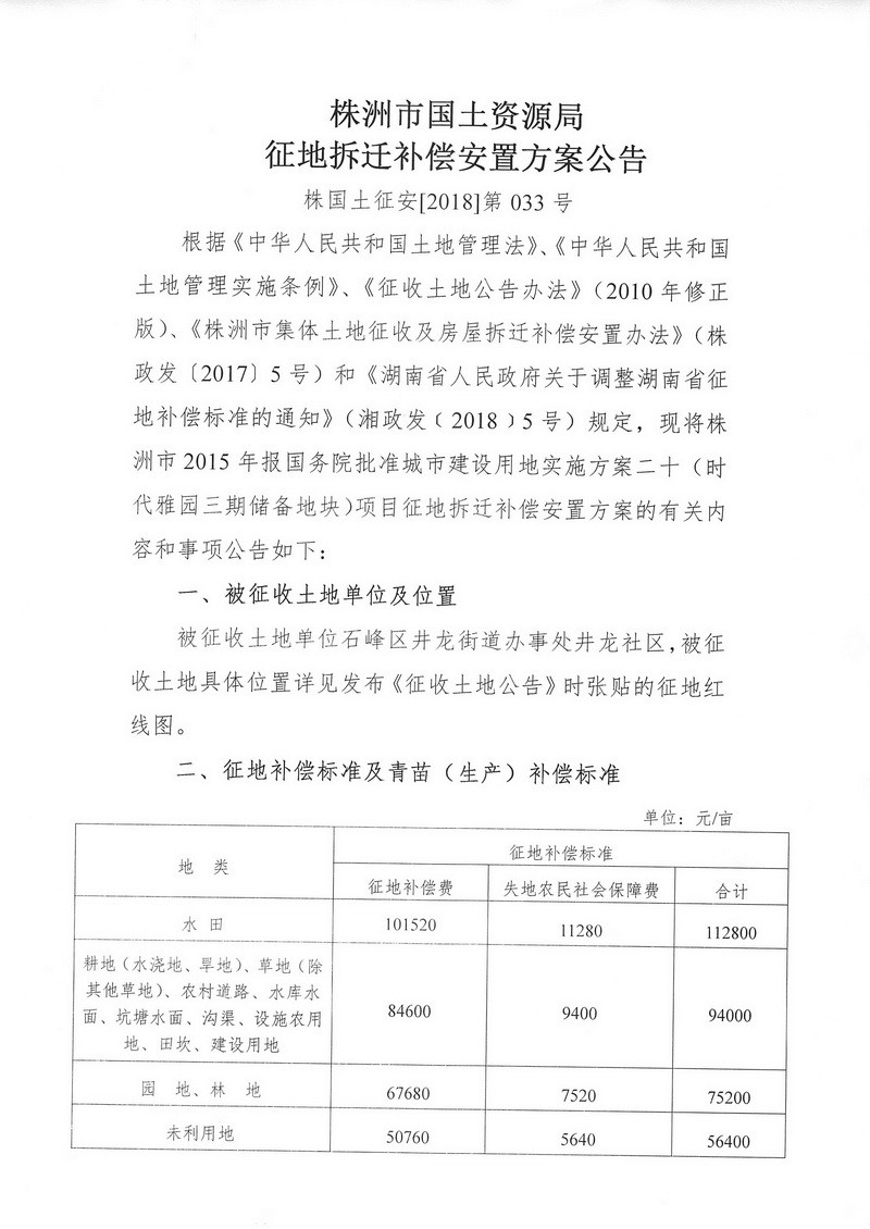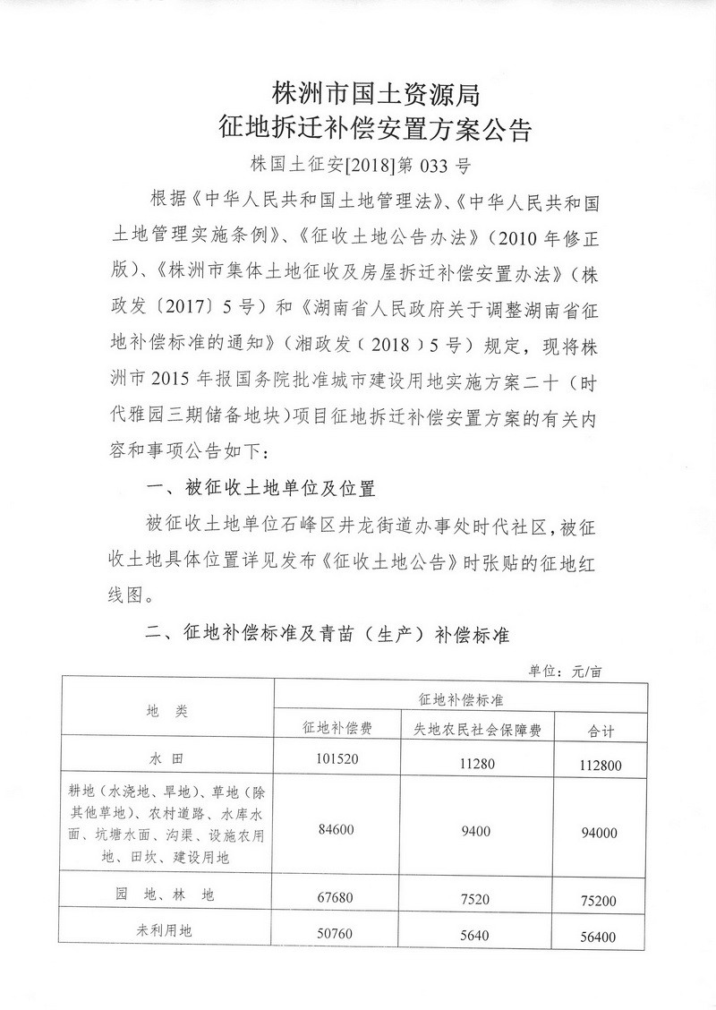 征地拆迁补偿安置方案公告--时代雅园三期储备地块