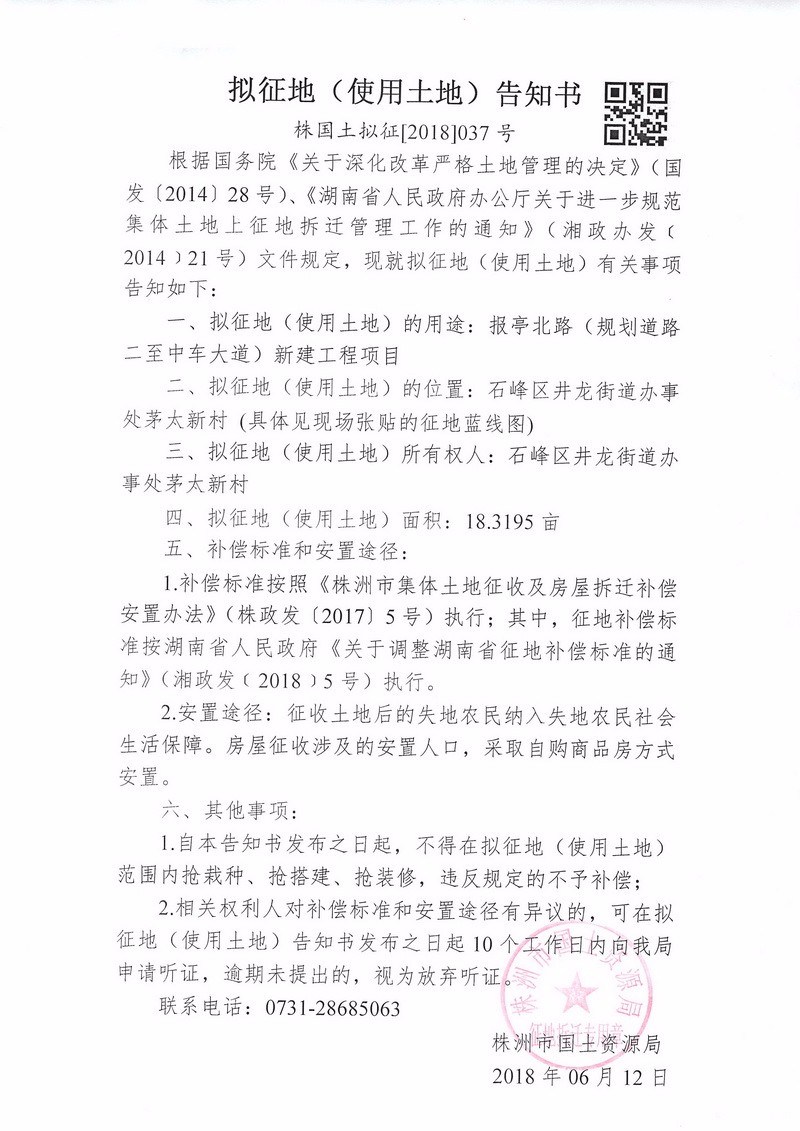 拟征地告知书-报亭北路(规划道路二至中车大道)