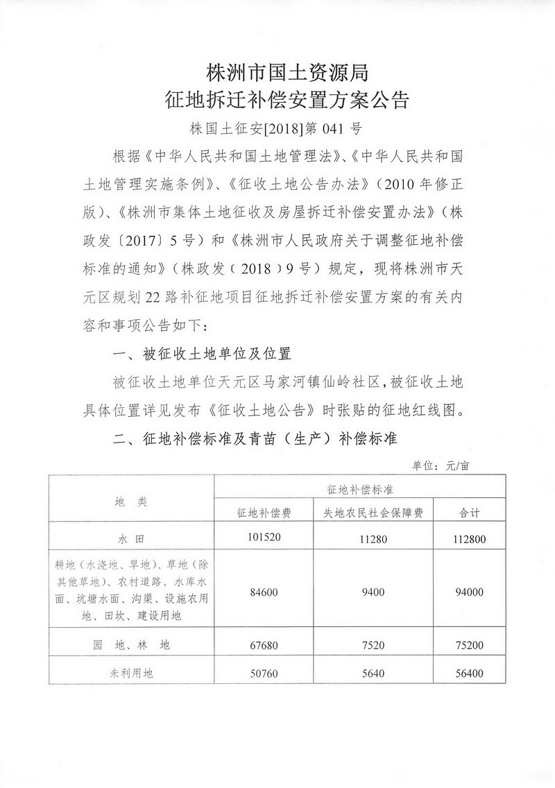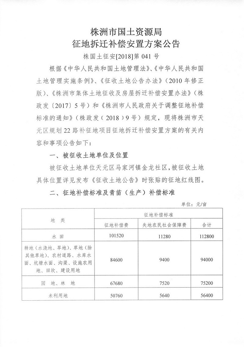征地拆迁补偿安置方案公告-天元区规划22路补征地
