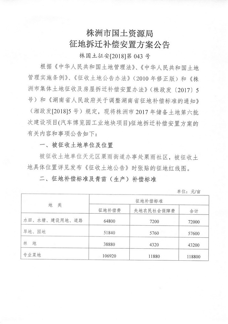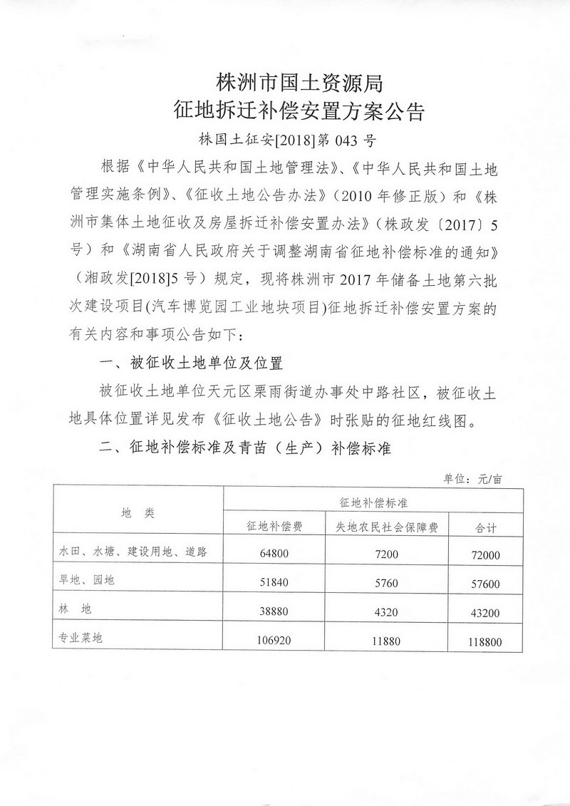 征地拆迁补偿安置方案公告--汽车博览园工业地块项目