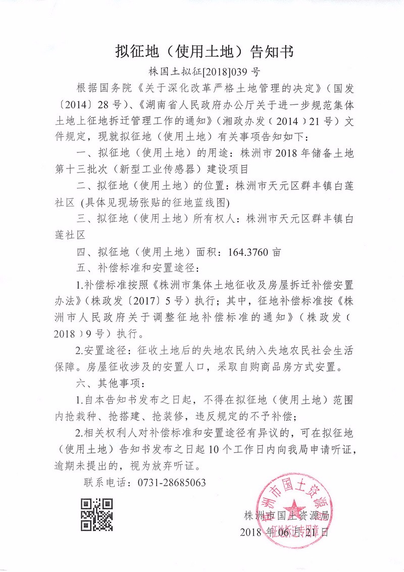 拟征地告知书--新型工业传感器建设项目