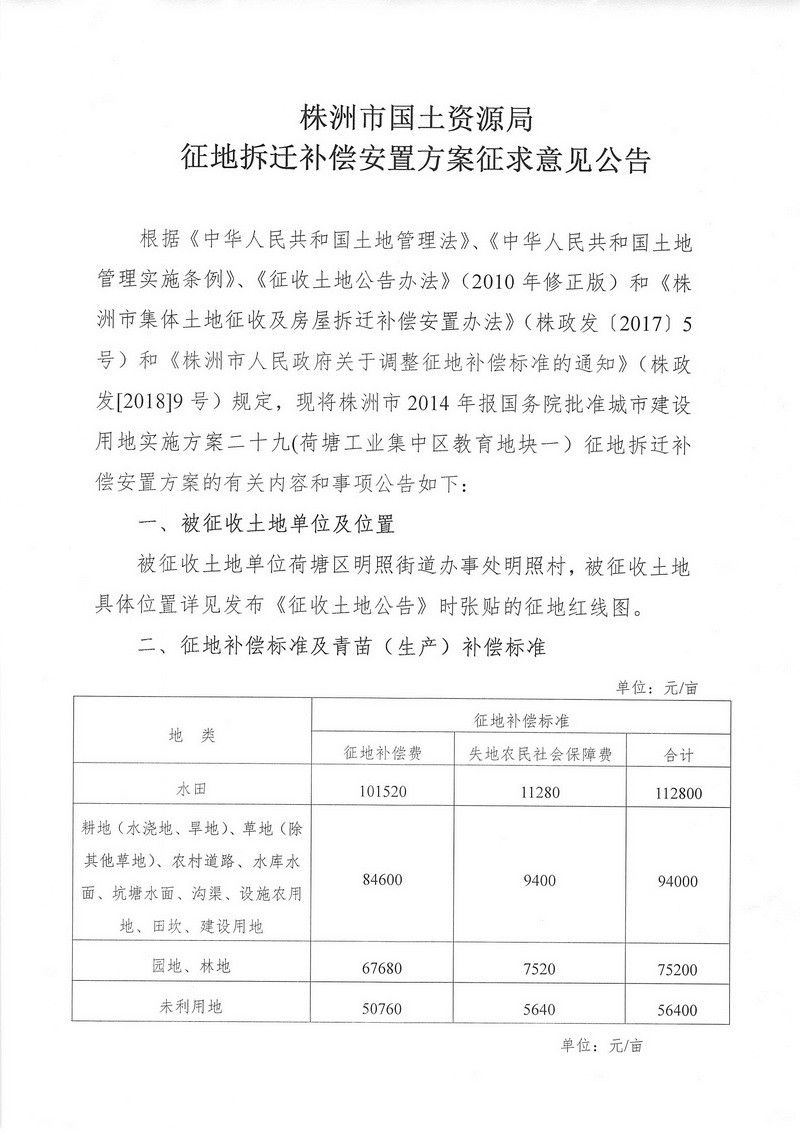 征地拆迁补偿安置方案征求意见公告-荷塘工业集中区教育地块一