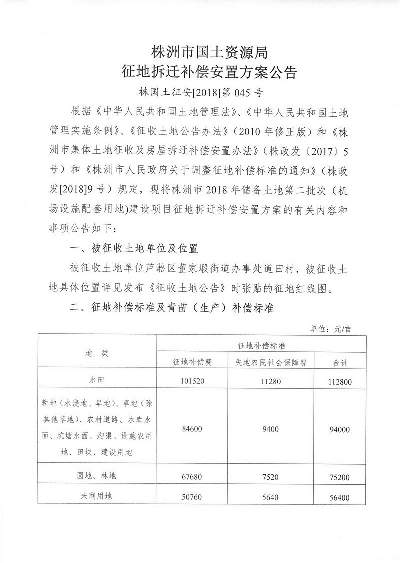 征地拆迁补偿安置方案公告-机场设施配套用地