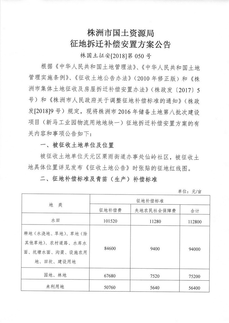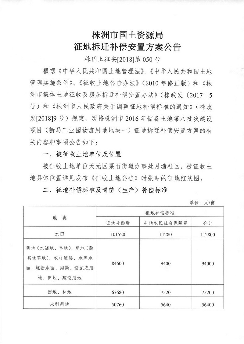 征地拆迁补偿安置方案公告--新马工业园物流用地地块一