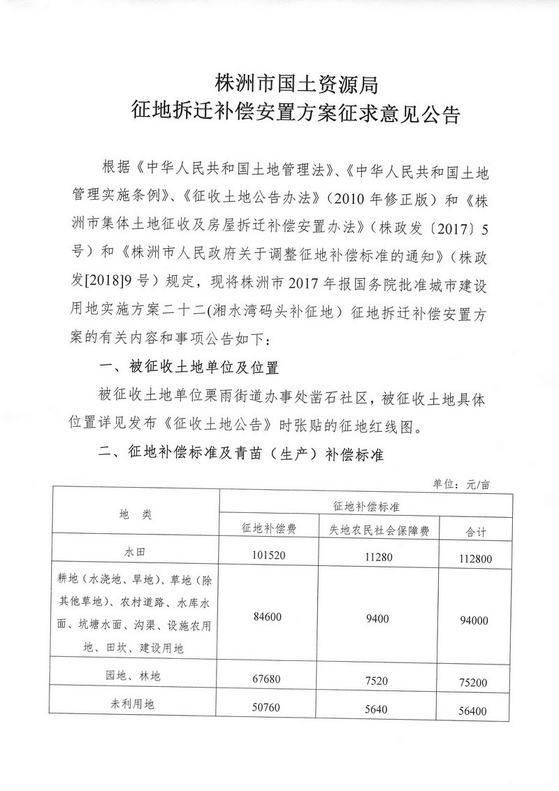 征地拆迁补偿安置方案征求意见公告--湘水湾码头补征地