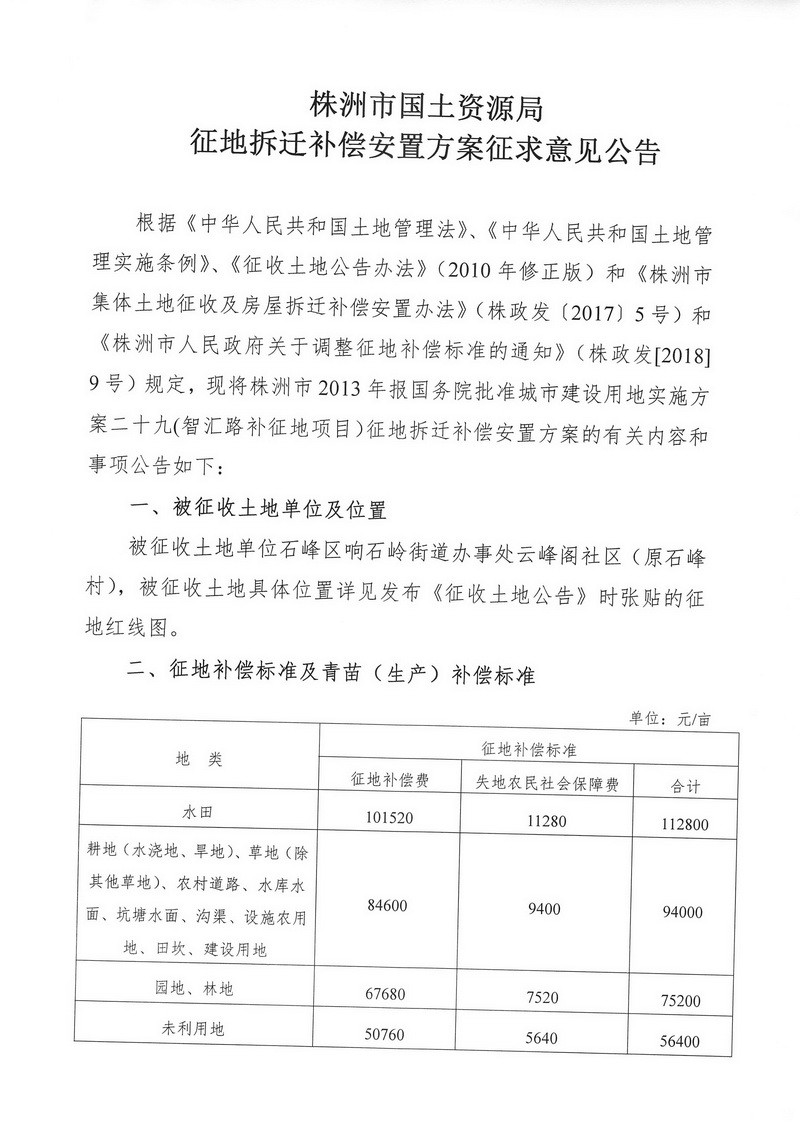 征地拆迁补偿安置方案征求意见公告--智汇路补征地项目