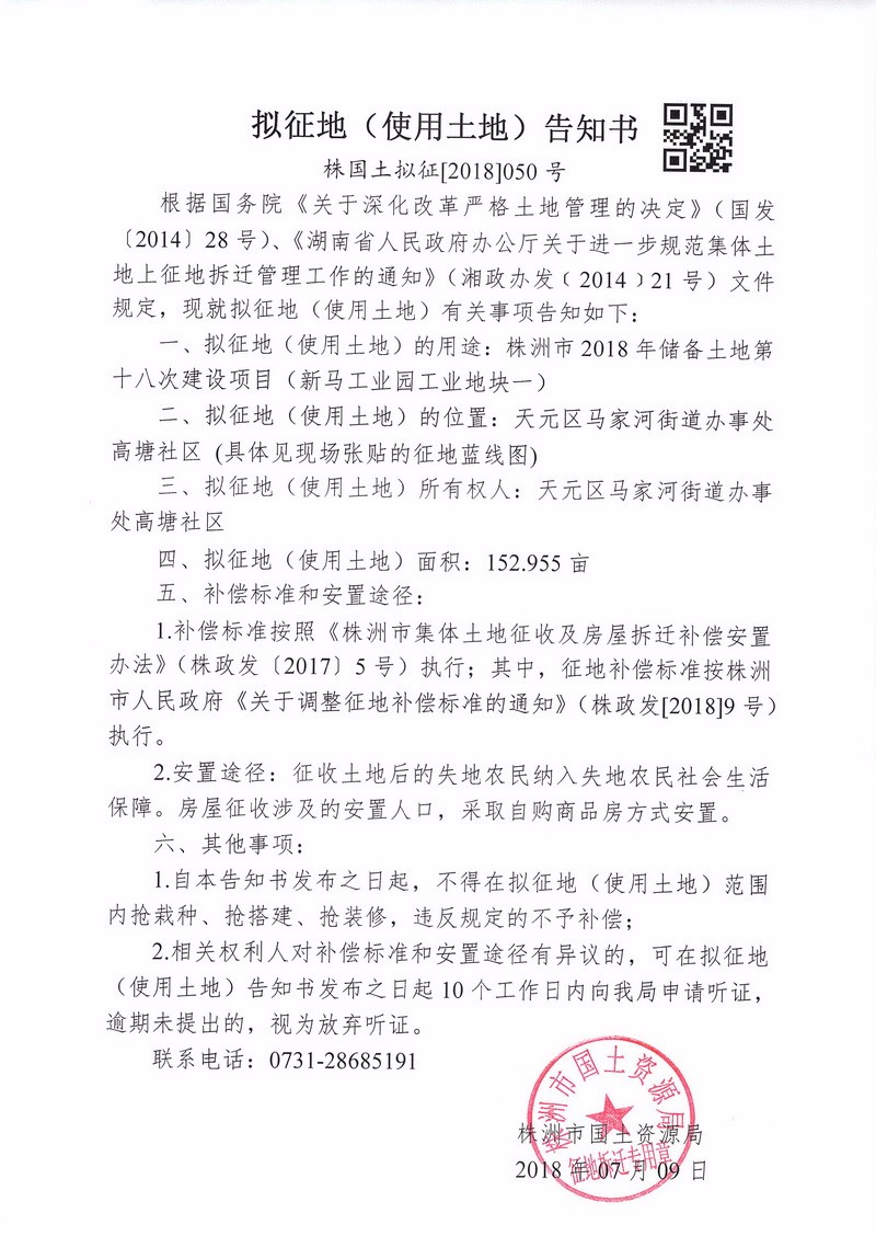 拟征地告知书--新马工业园工业地块一