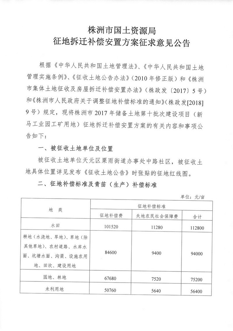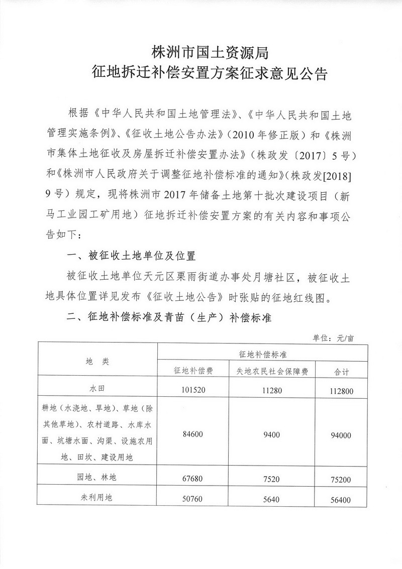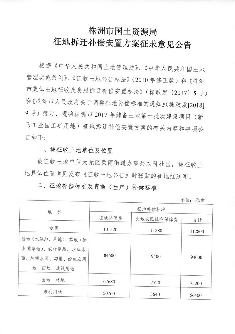 征地拆迁补偿安置方案征求意见公告--新马工业园工矿用地