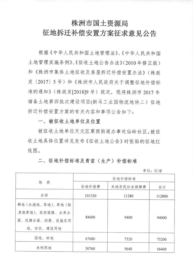 征地拆迁补偿安置方案征求意见公告--新马工业园物流地块二