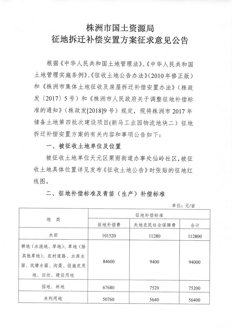 征地拆迁补偿安置方案征求意见公告--新马工业园物流地块二