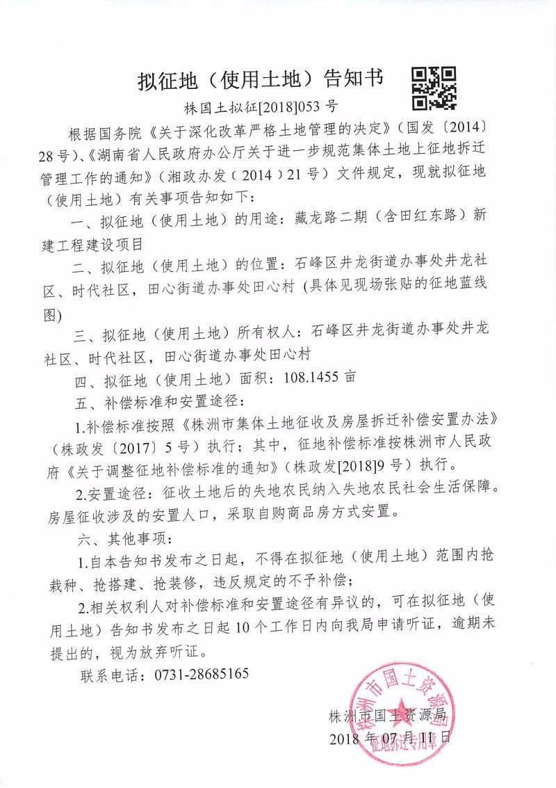 拟征地告知书--藏龙路二期(含田红东路)新建工程建设项目