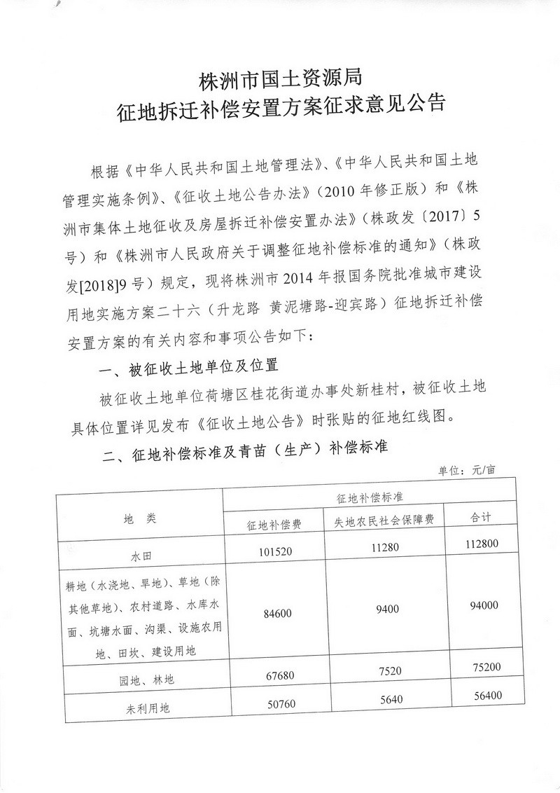 征地拆迁补偿安置方案征求意见公告--升龙路 黄泥塘路—迎宾路