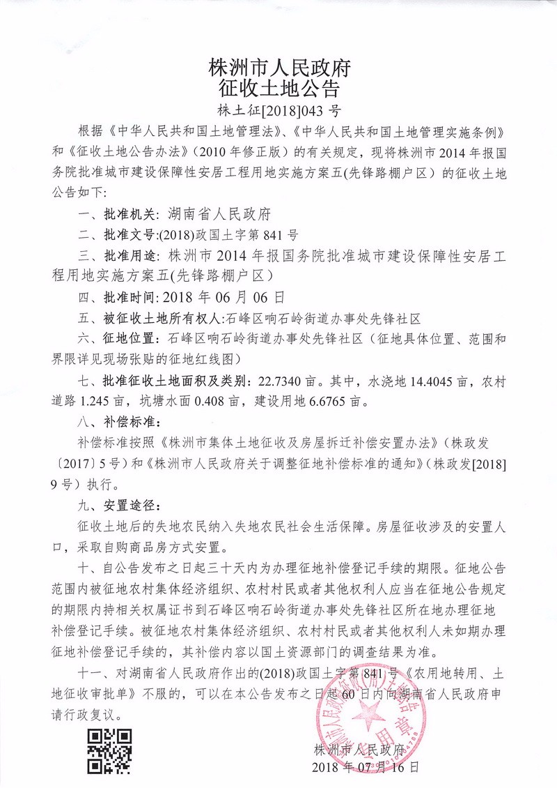 征收土地公告--先锋路棚户区