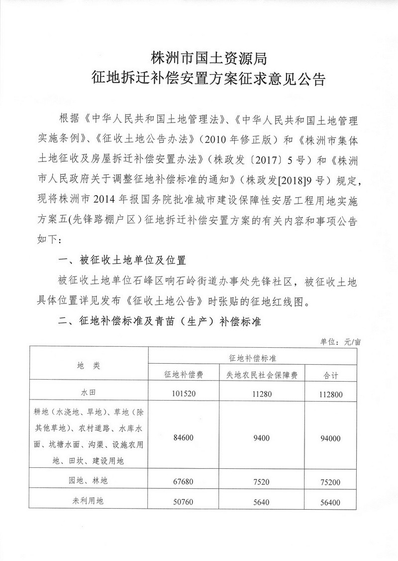 征地拆迁补偿安置方案征求意见公告--先锋路棚户区