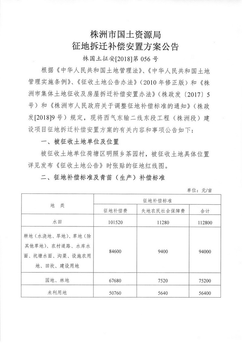 征地拆迁补偿安置方案公告-西气东输二线东段工程(株洲段)建设项目