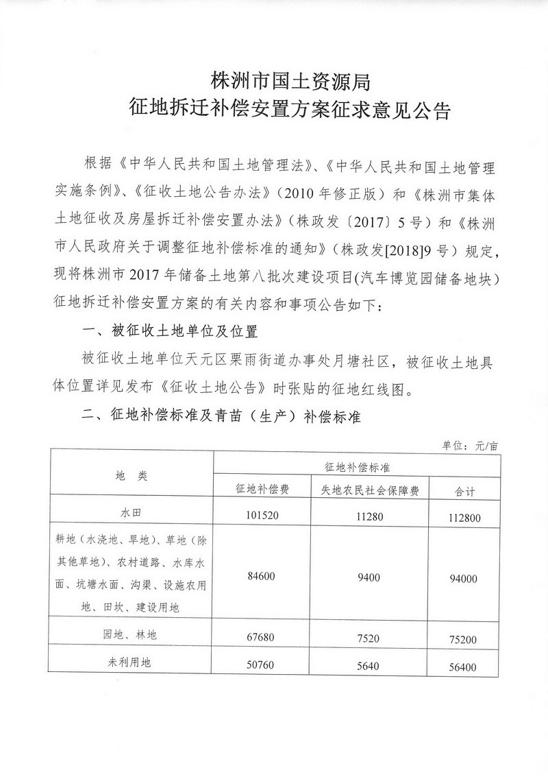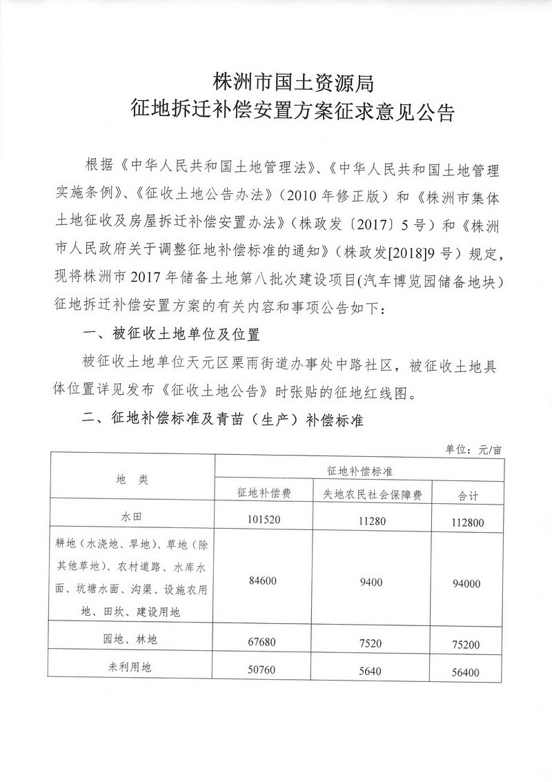 征地拆迁补偿安置方案征求意见公告--汽车博览园储备地块