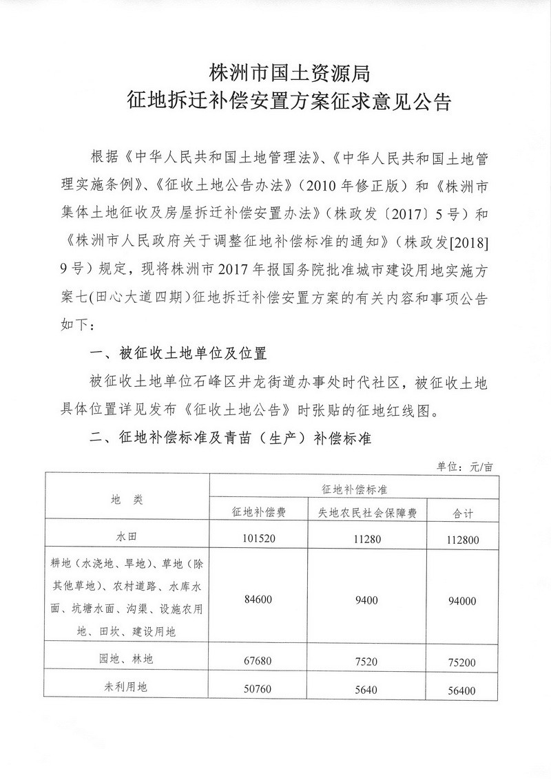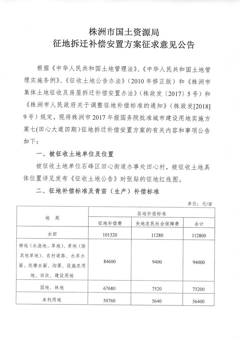 征地拆迁补偿安置方案征求意见公告--田心大道四期
