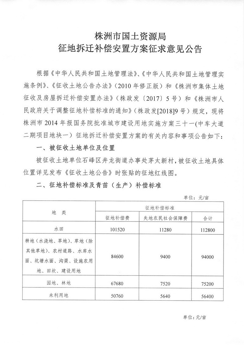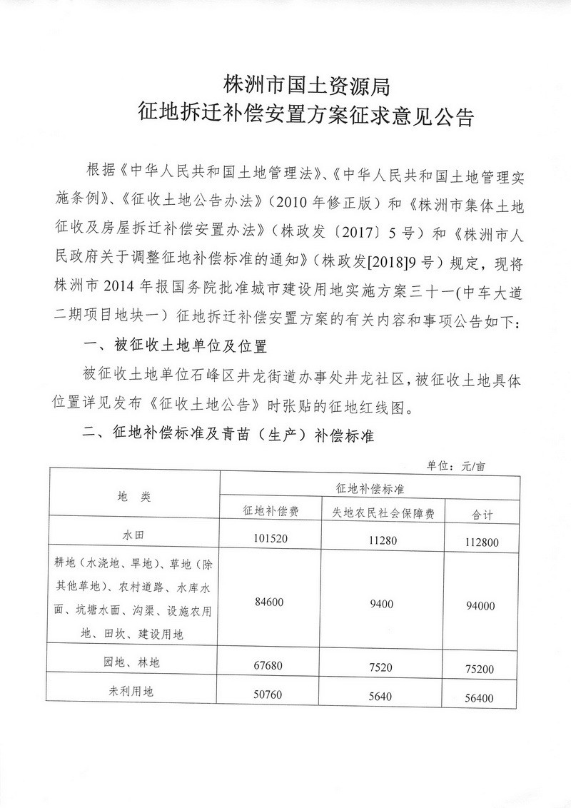 征地拆迁补偿安置方案征求意见公告--中车大道二期项目地块一