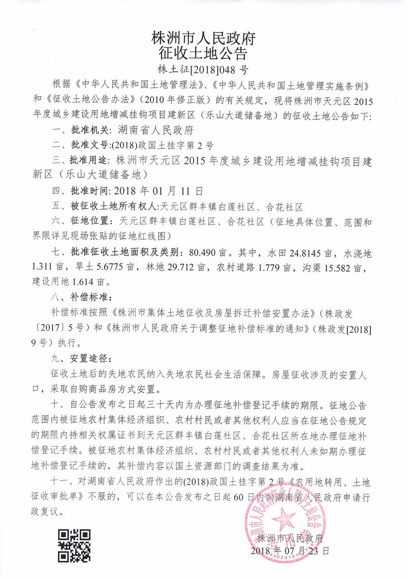 征收土地公告--乐山大道储备地块