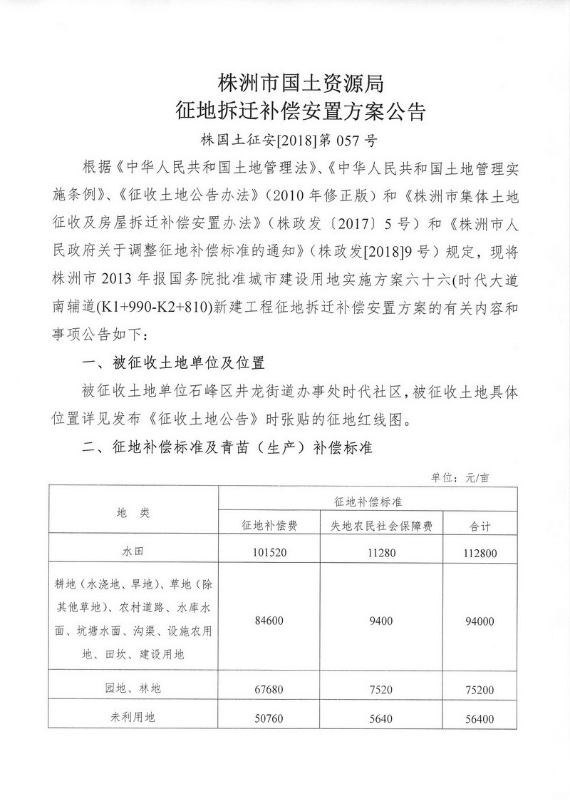 征地拆迁补偿安置方案公告--时代大道南辅道项目
