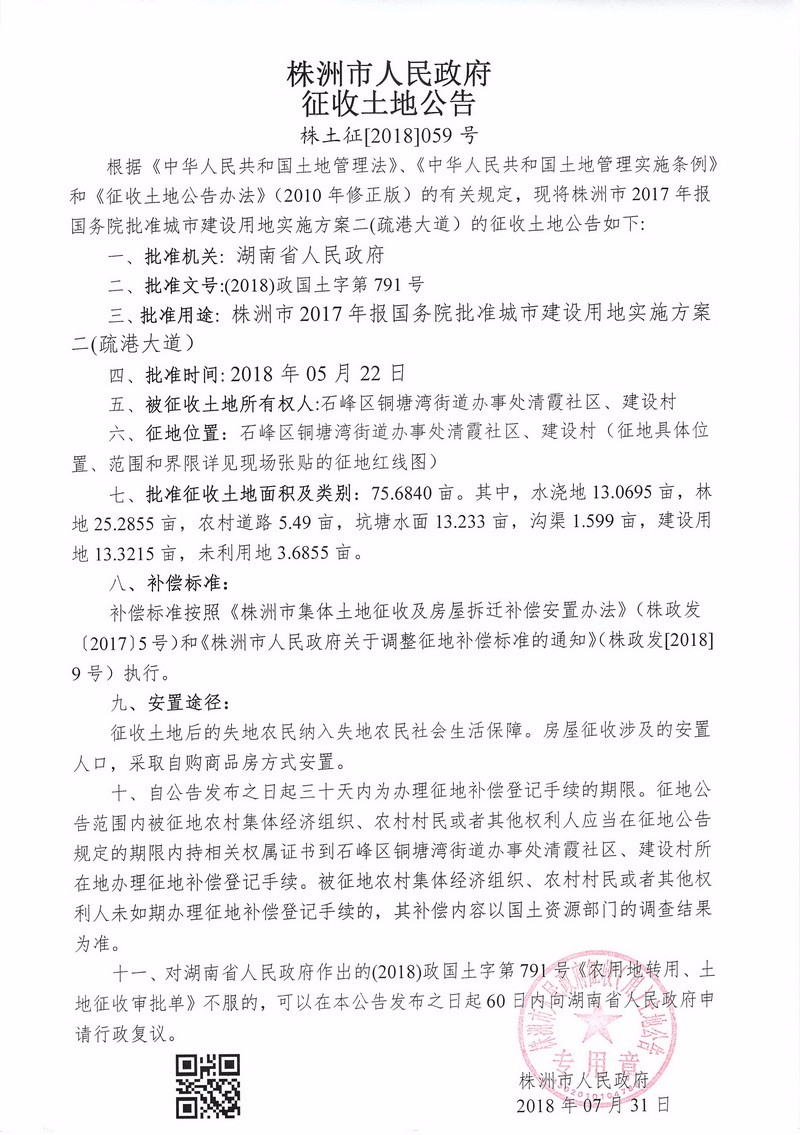 征收土地公告--疏港大道项目