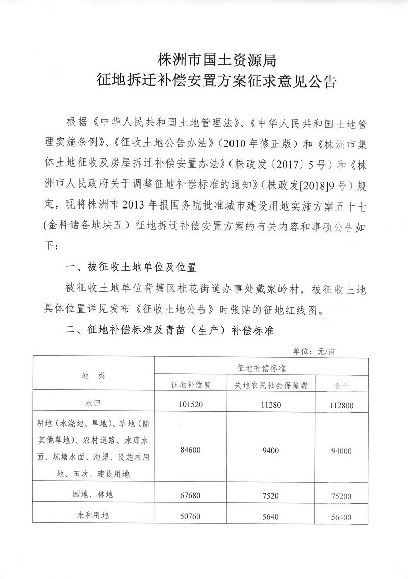 征地拆迁补偿安置方案征求意见公告--金科储备地块五