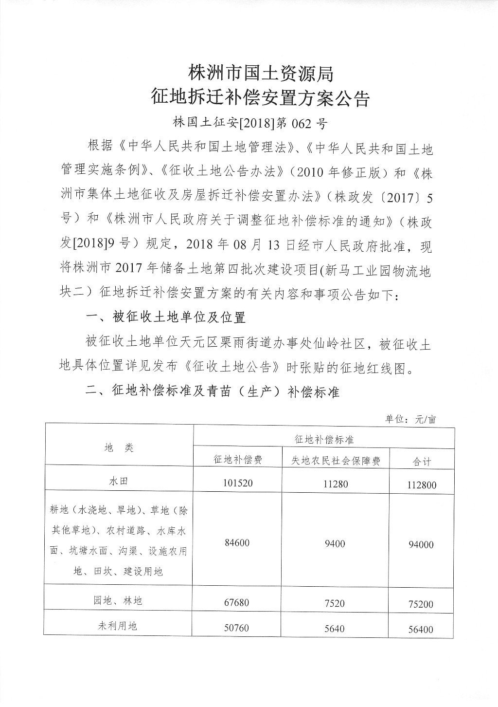 征地拆迁补偿安置方案公告-新马工业园物流地块二