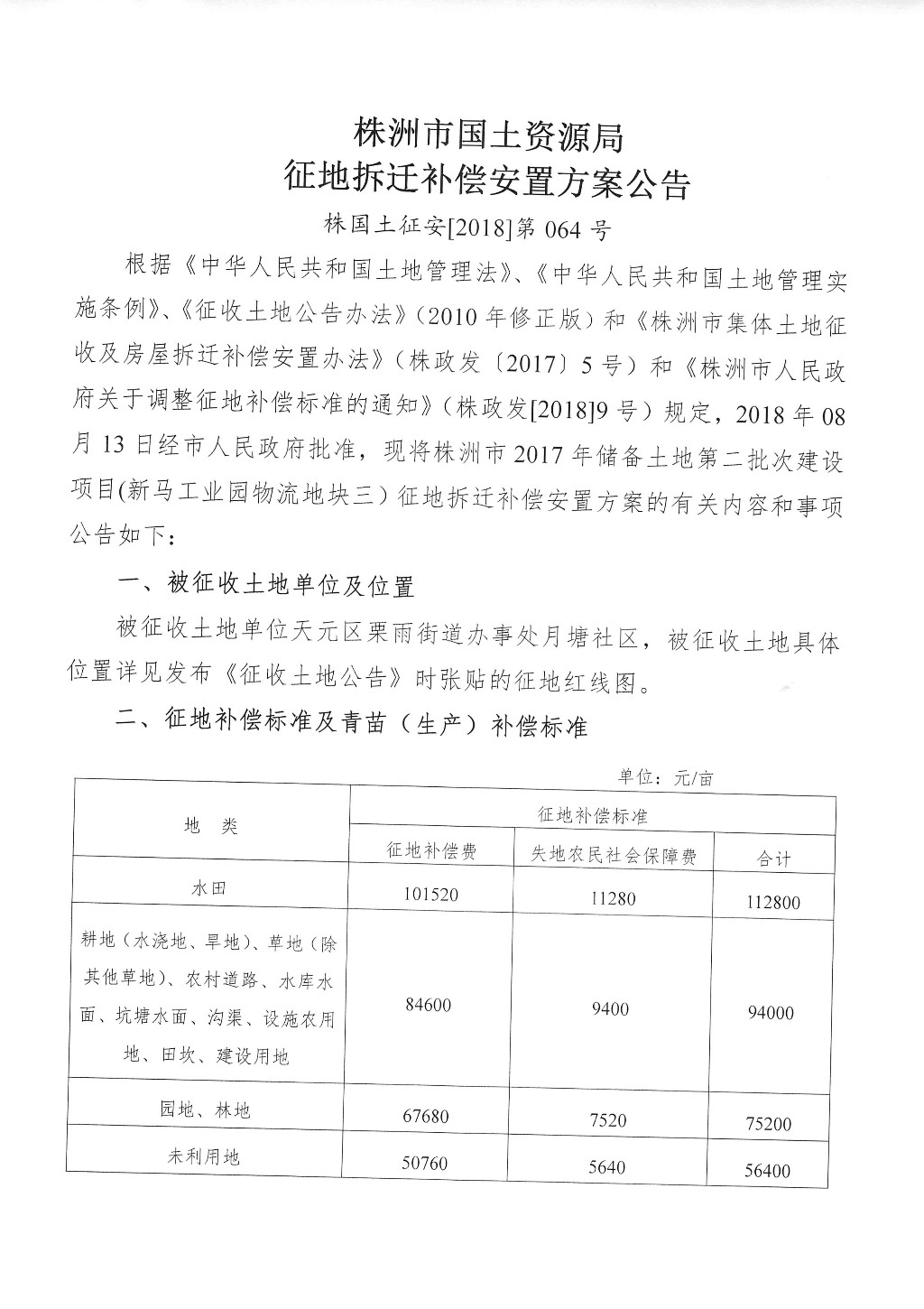 征地拆迁补偿安置方案公告-新马工业园物流地块三