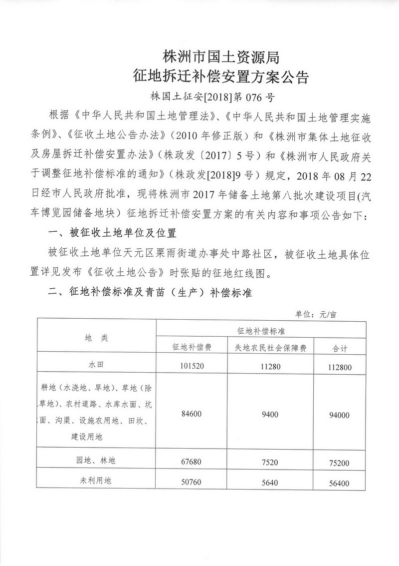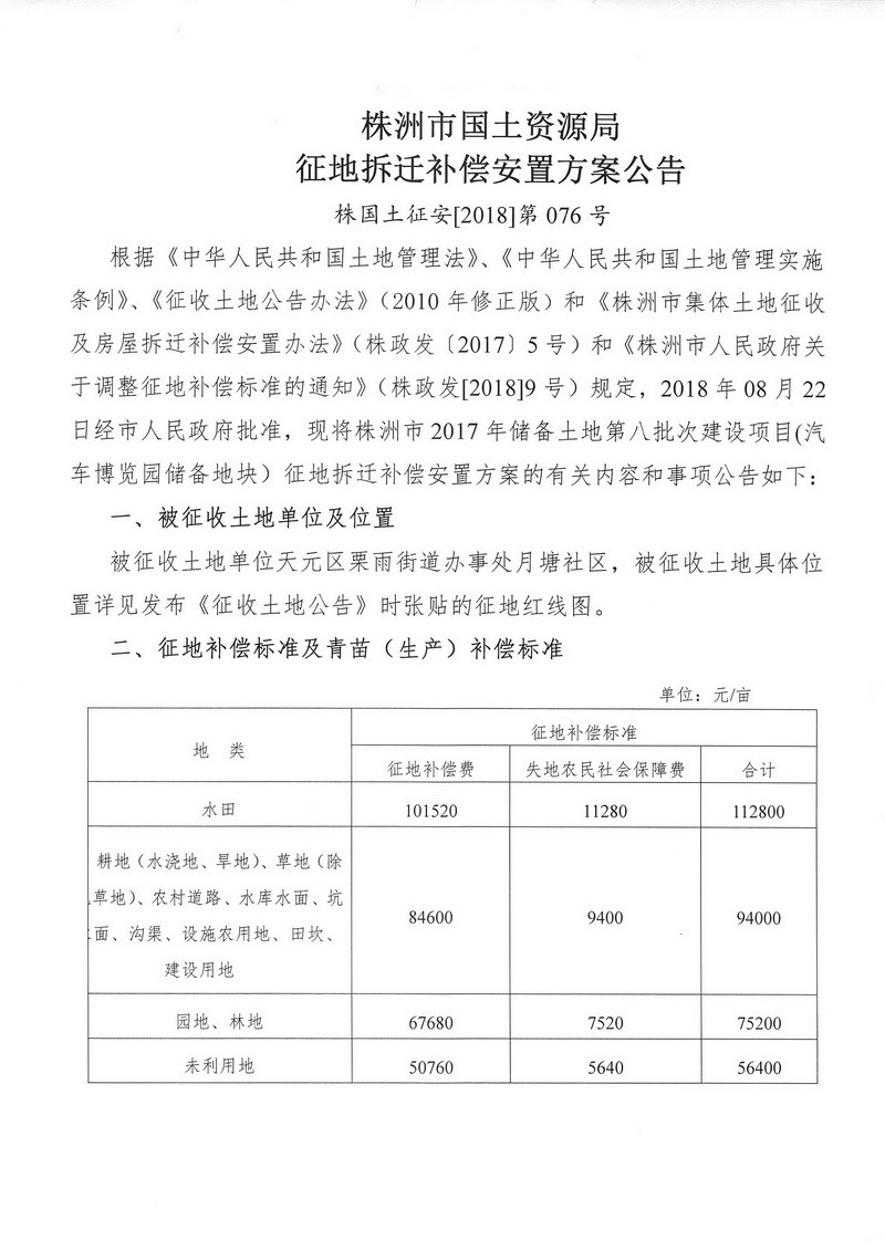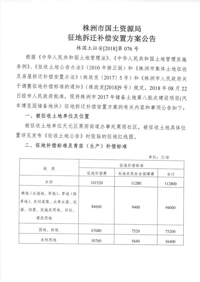 征地拆迁补偿安置方案公告—汽车博览园储备地块
