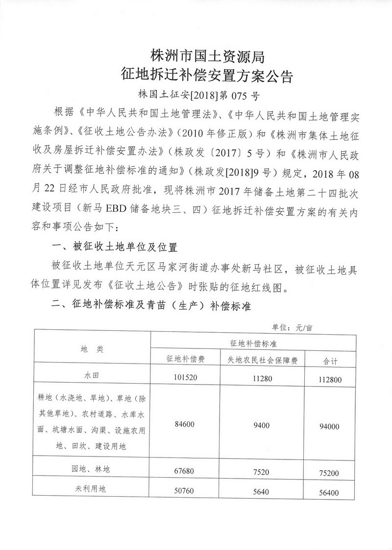 征地拆迁补偿安置方案公告—新马EBD储备地块三、四