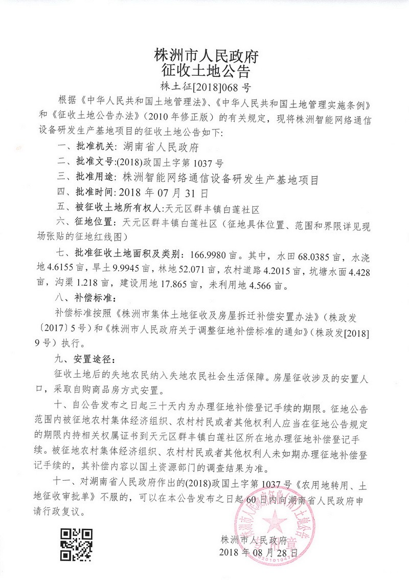 征收土地公告-—智能网络通信设备研发生产基地项目