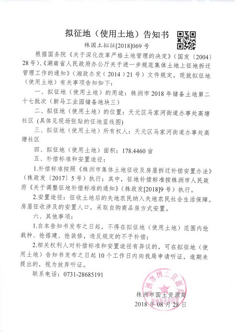 拟征地(使用土地)告知书—新马工业园储备地块三
