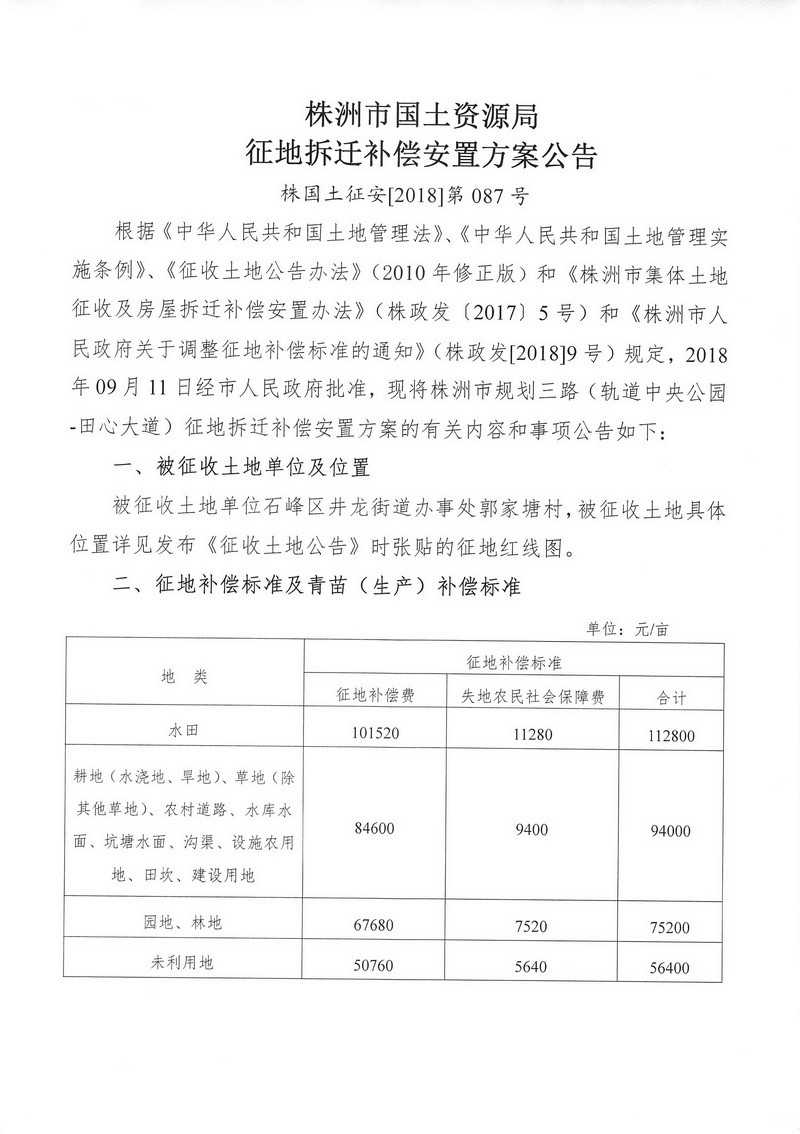 征地拆迁补偿安置方案公告—(轨道中央公园—田心大道)