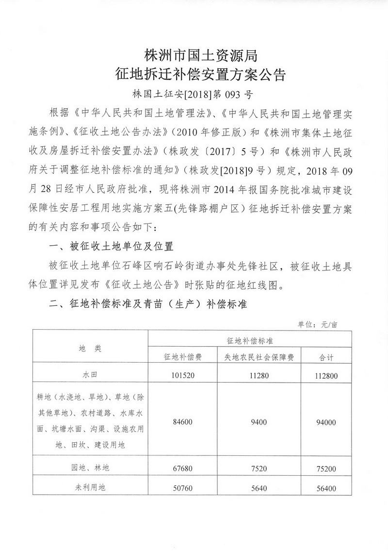 征地拆迁补偿安置方案公告--先锋路棚户区项目
