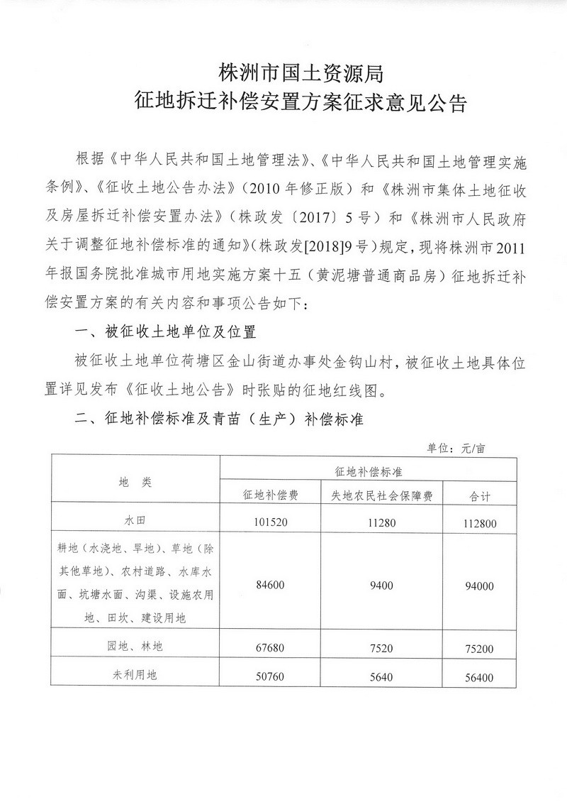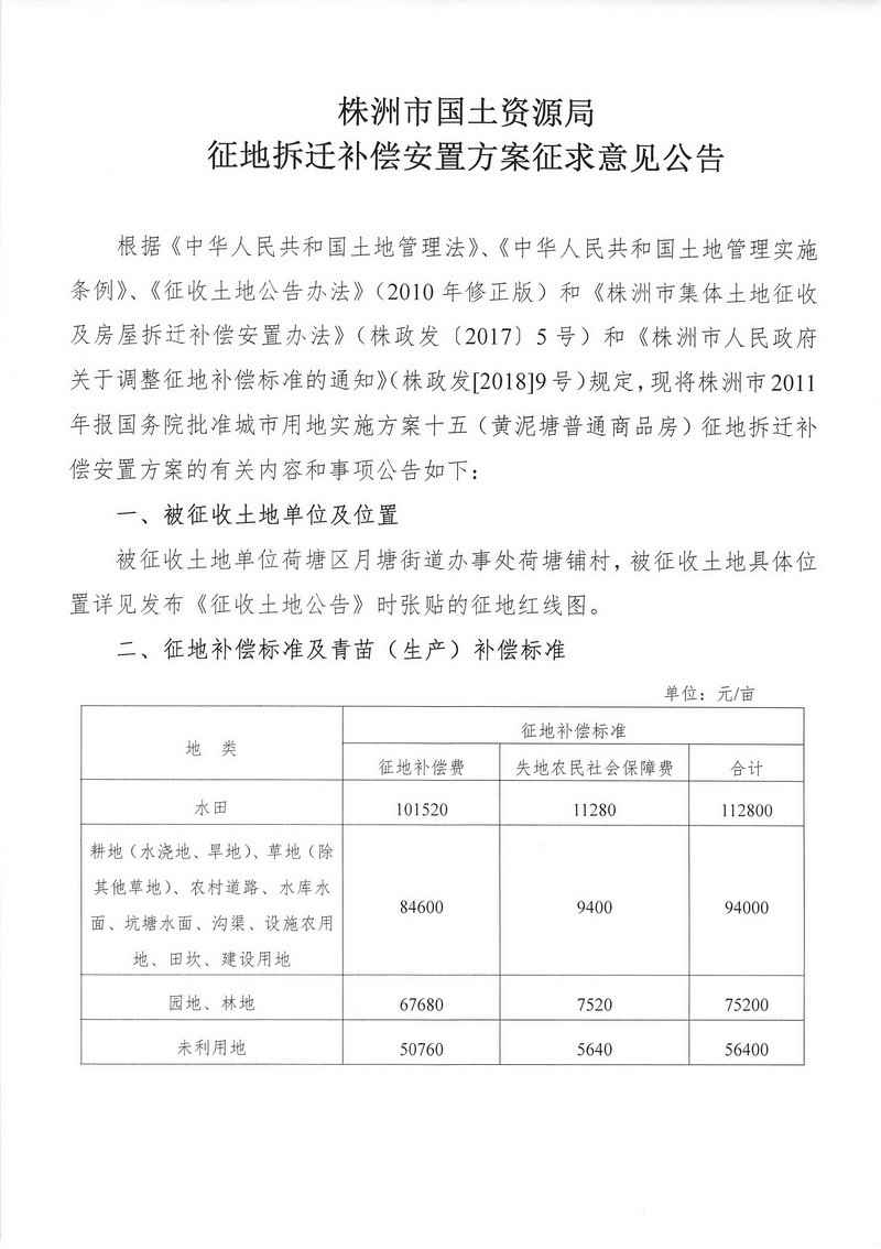 征地拆迁补偿安置方案征求意见公告--黄泥塘普通商品房项目