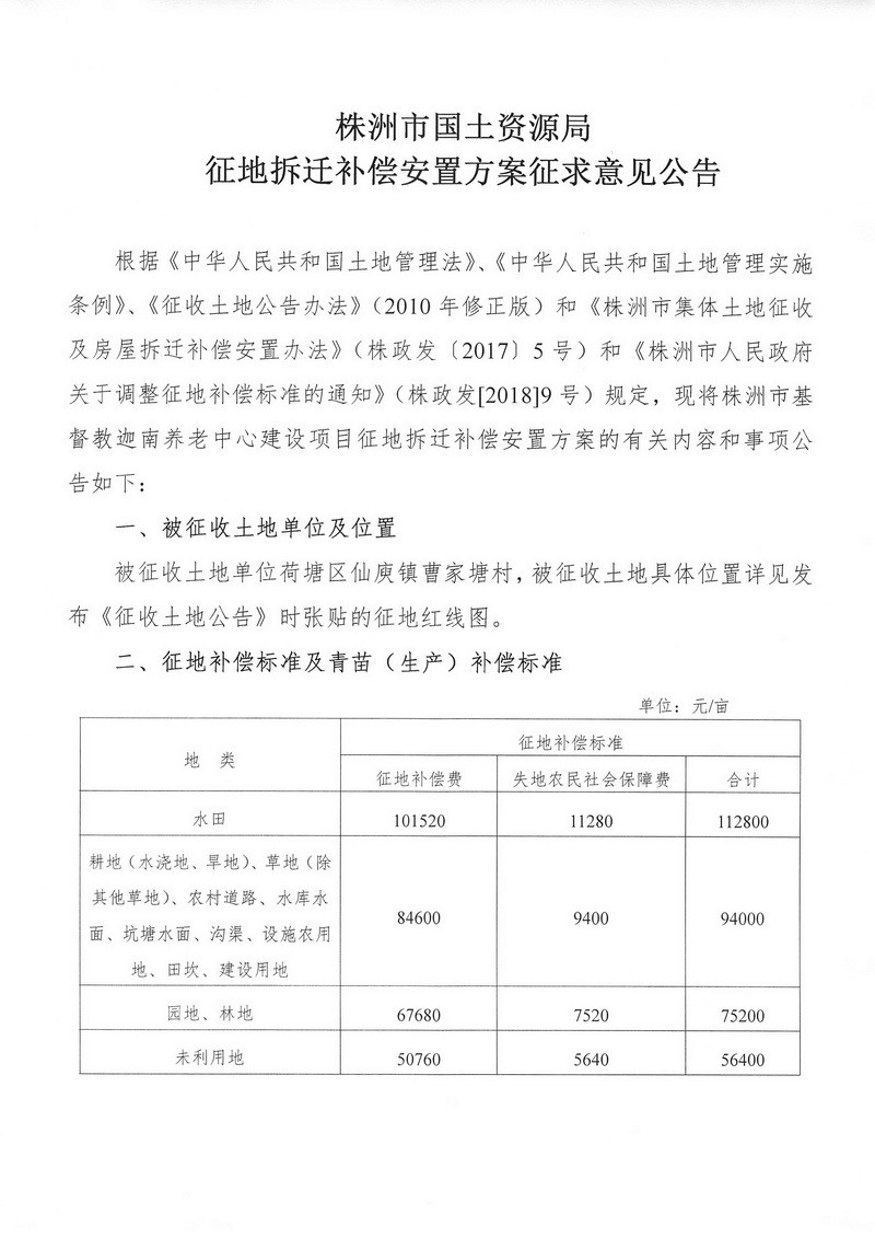 征地拆迁补偿安置方案征求意见公告-株洲市基督教迦南养老中心建设项目