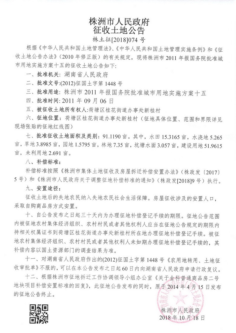 征收土地公告--株洲市2011年报国务院批准城市用地实施方案十项目
