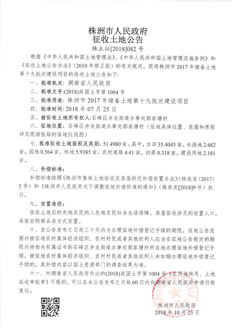 征收土地公告--株洲市2017年储备地第十九批次建设项目