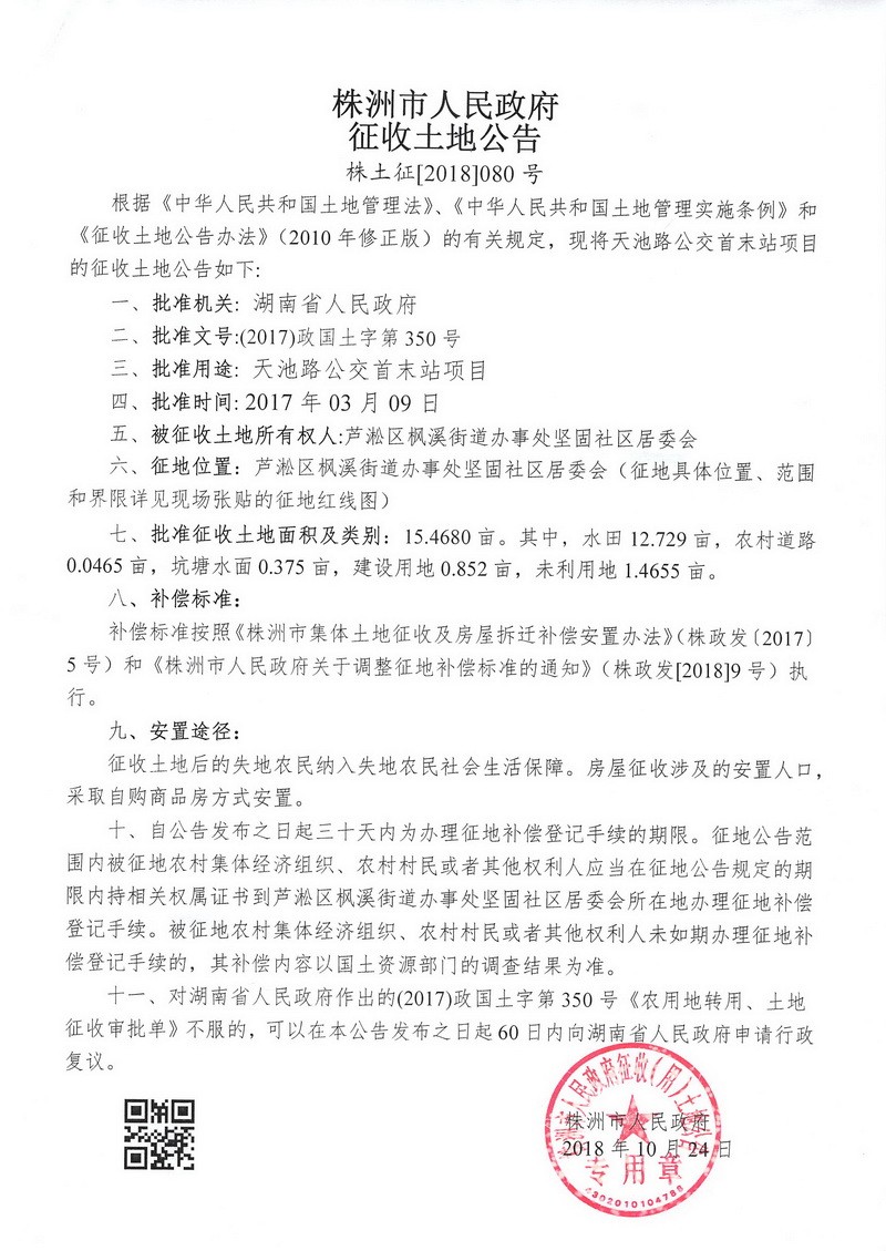 征收土地公告--天池路公交首末站项目