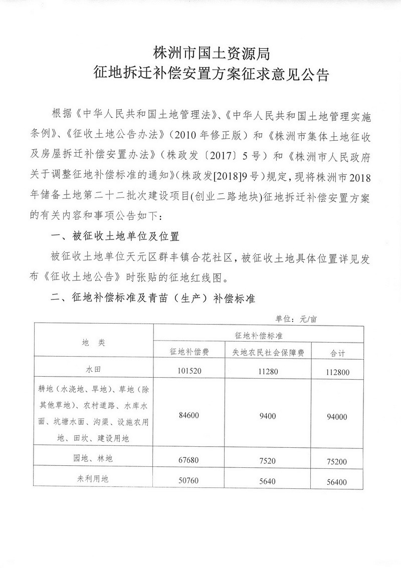 征地拆迁补偿安置方案征求意见公告--创业二路地块项目