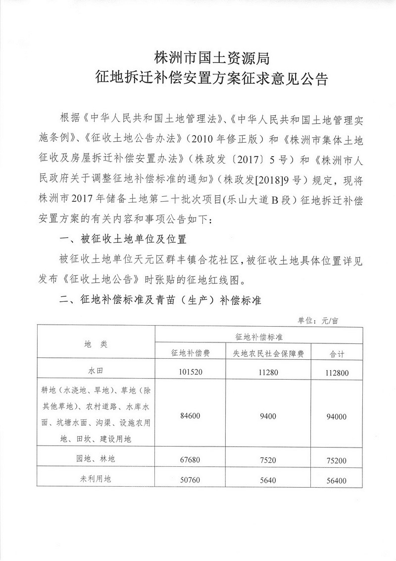 征地拆迁补偿安置方案征求意见公告--乐山大道B段项目