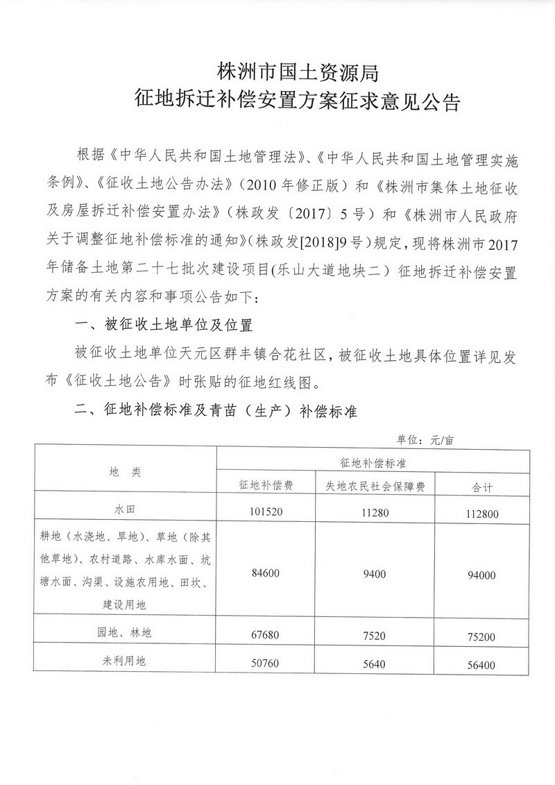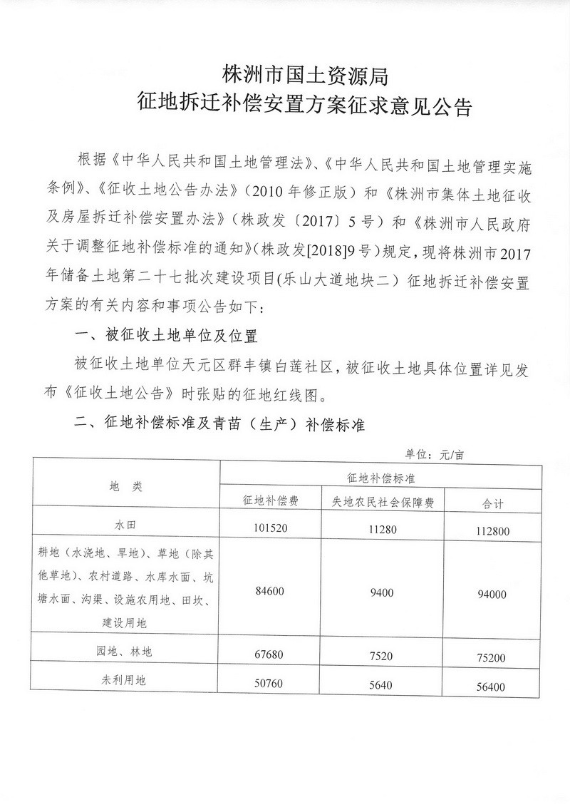 征地拆迁补偿安置方案征求意见公告--乐山大道地块二
