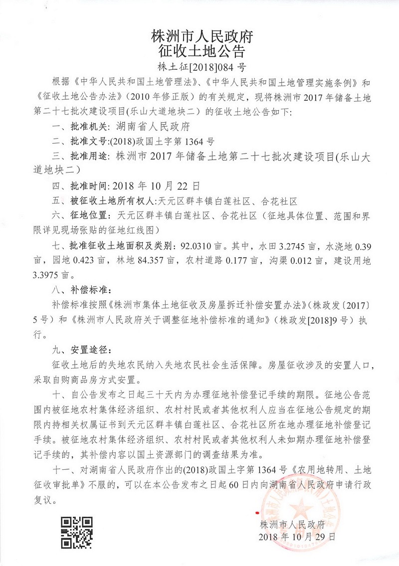 征收土地公告--乐山大道地块二