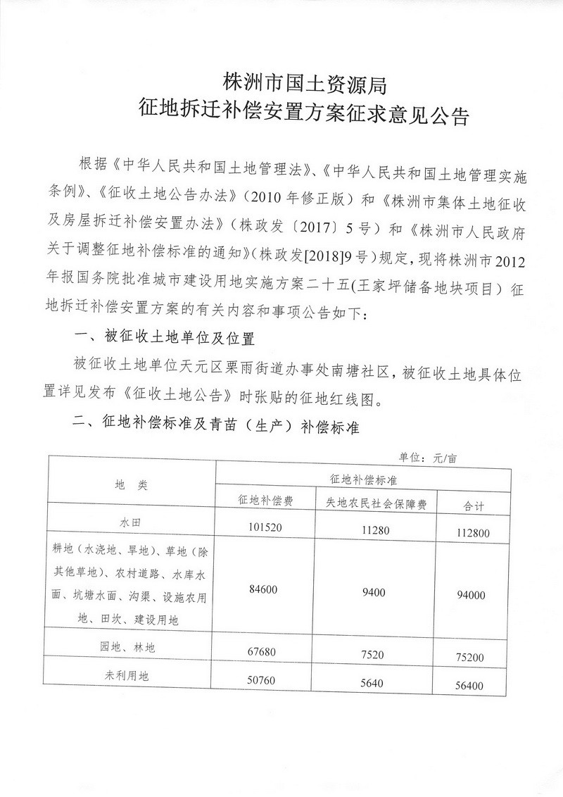 征地拆迁补偿安置方案征求意见公告--王家坪储备地块项目