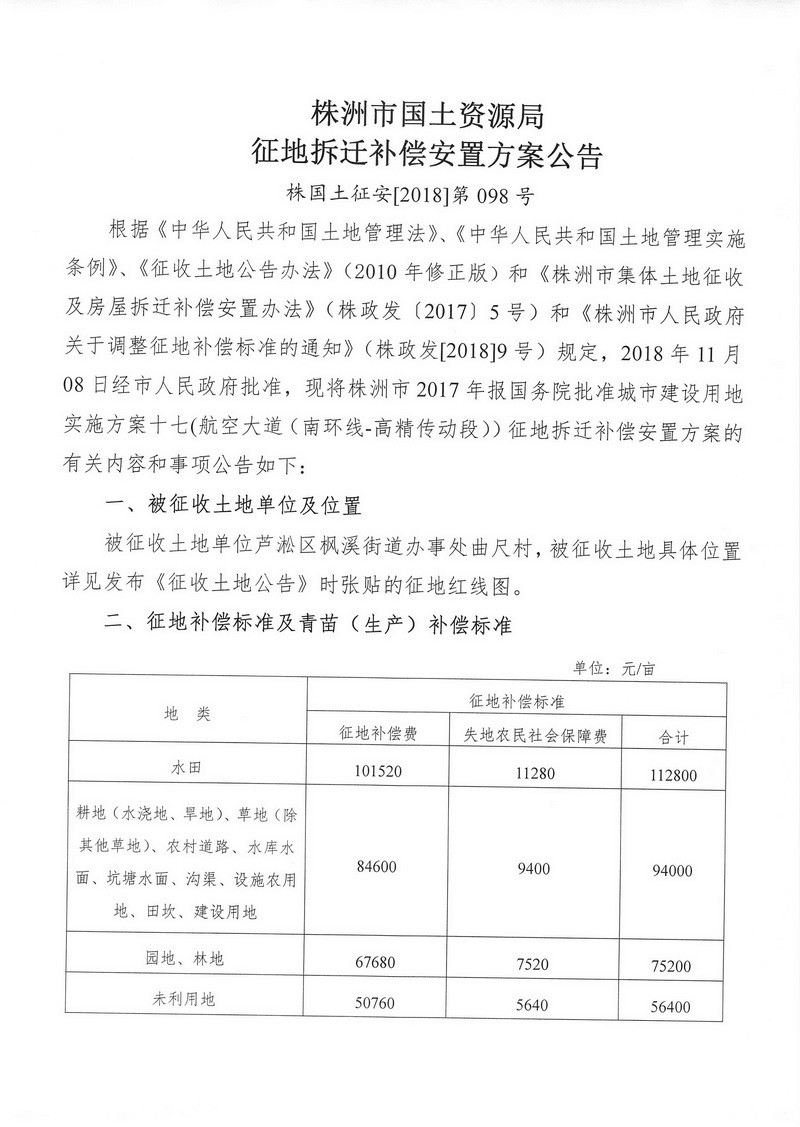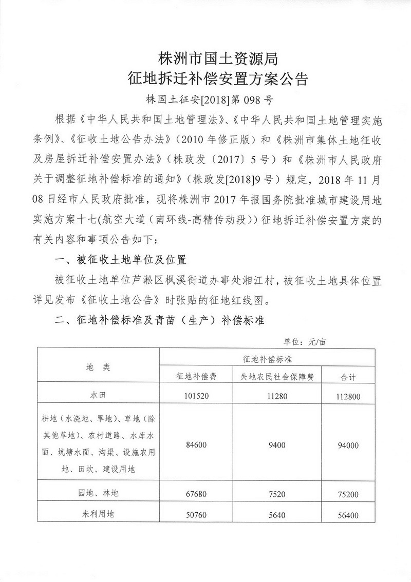 征地补偿安置方案公告--航空大道(南环线-高精传动段)