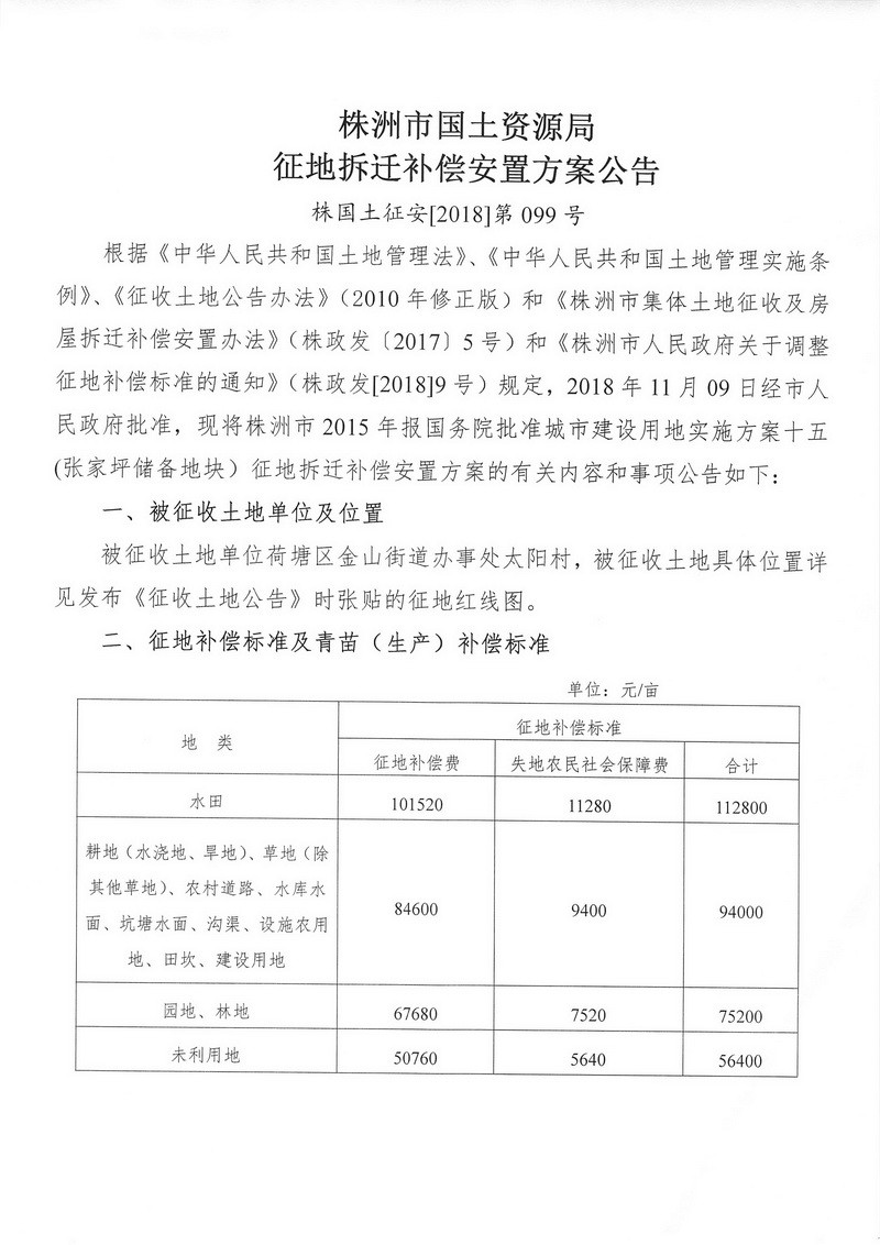 征地拆迁补偿安置方案公告--张家坪储备地块项目