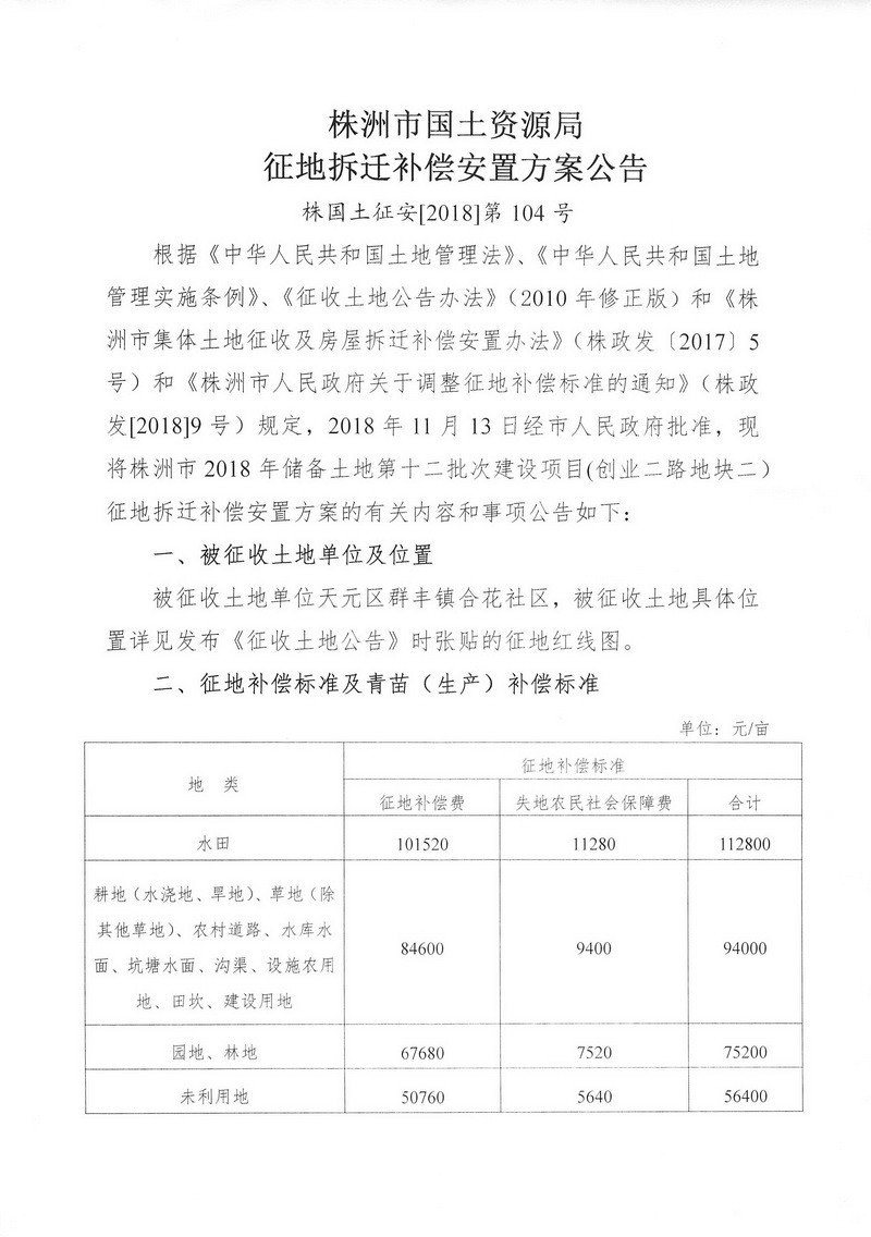 征地拆迁补偿安置方案公告--创业二路地块二