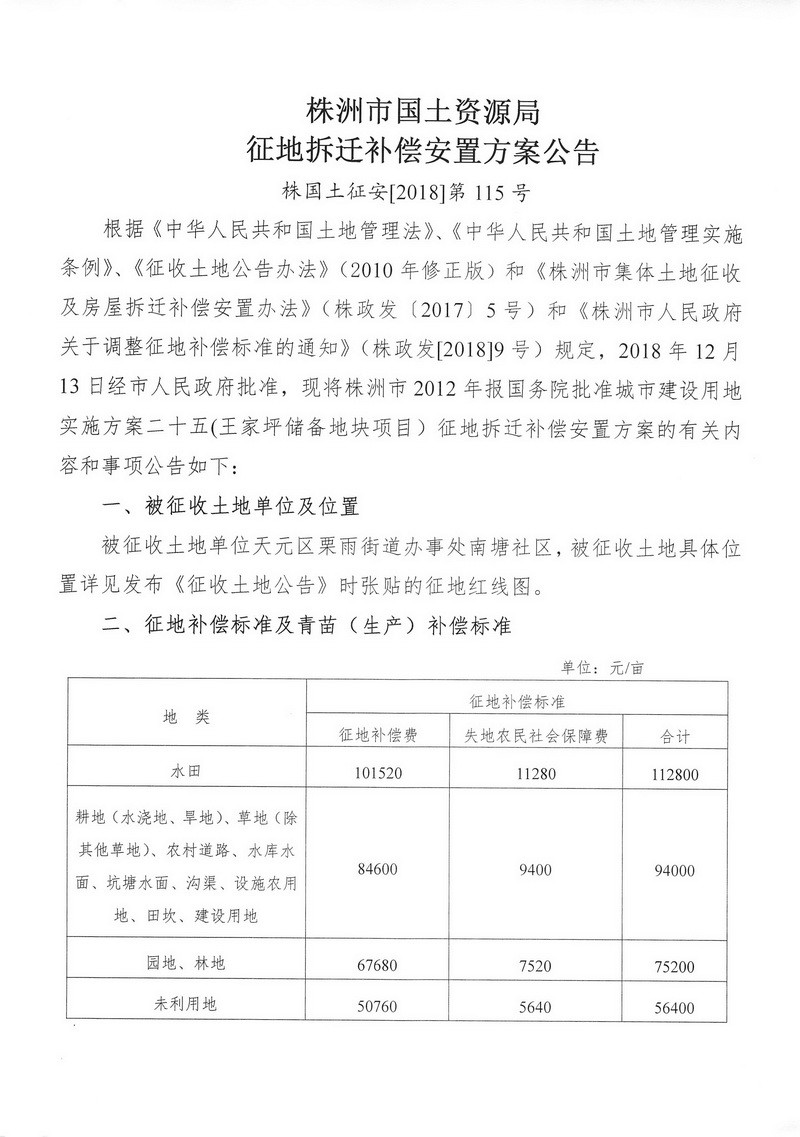 征地拆迁补偿安置方案公告--王家坪储备地块项目